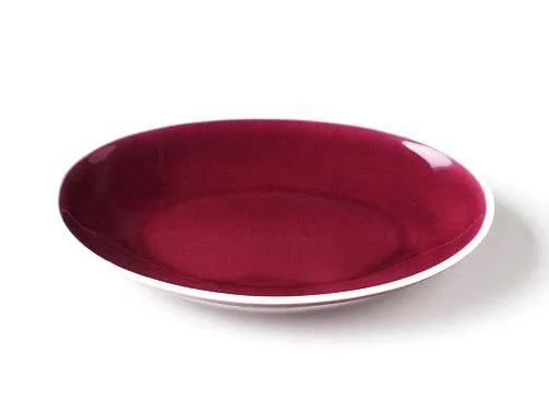 パッと目を惹く鮮やかな赤紫に、フチの白いアクセントが効いた楕円皿です。