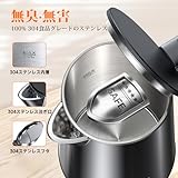 | 1 | Nafuhare 電気ケトル | ステンレス鋼、アクリロニトリルブタジエンスチレン(ABS)、強化ガラス | W15.9×D15.9×H24.9㎝・1.7 L | 三角口、フィルター付き | 水量800mLの場合約4分 | あり | ・取手のボタンを押すと開く ・取り外し不可 |
