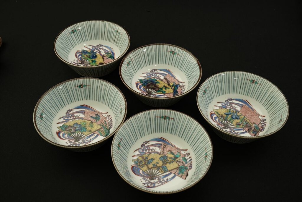 九谷焼 白雅 4.5号小鉢揃 扇絵変り