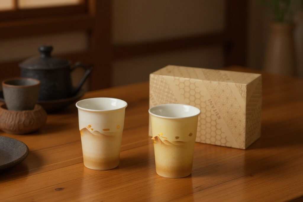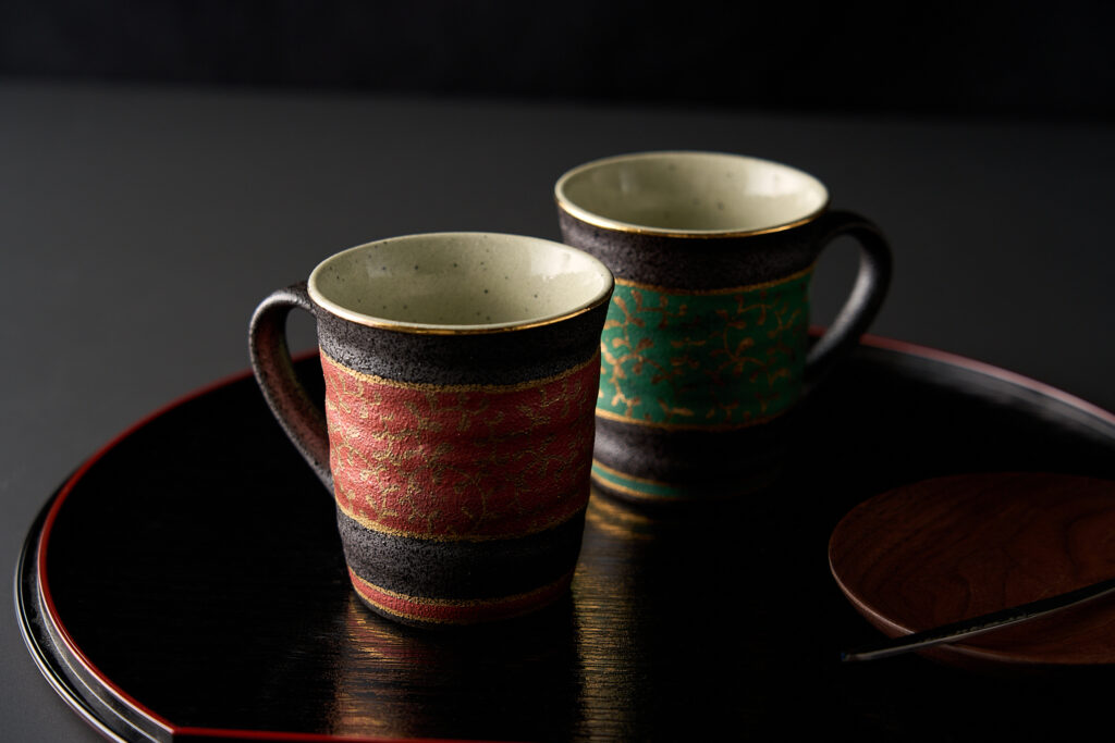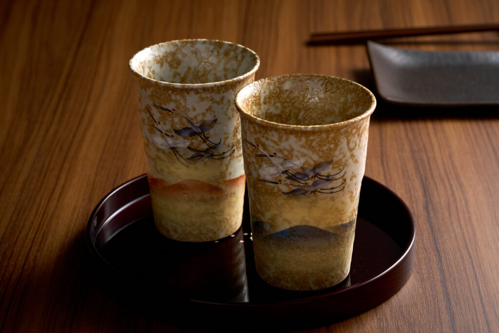 九谷焼 ペアフリーカップ 金箔金銀彩連山