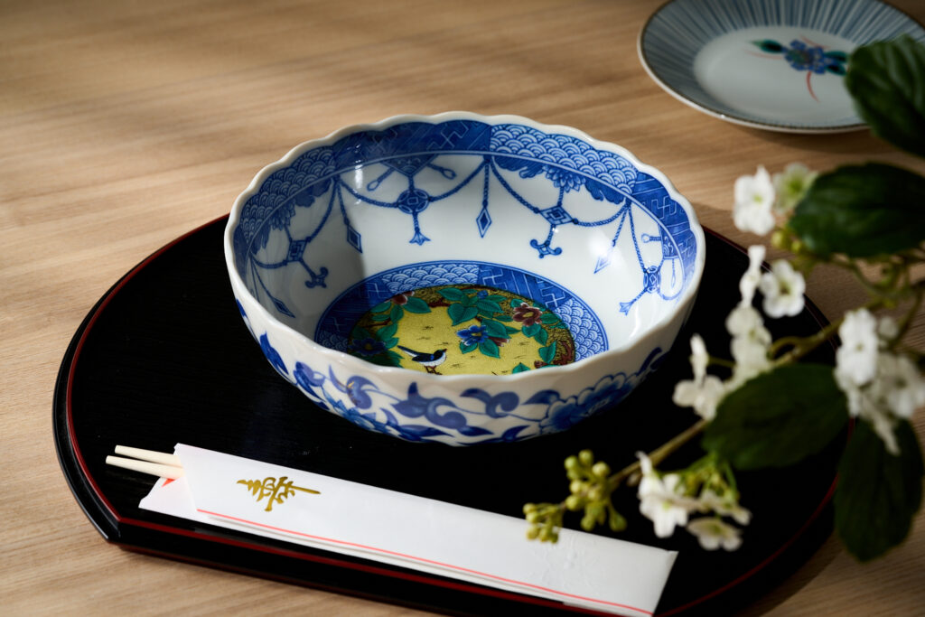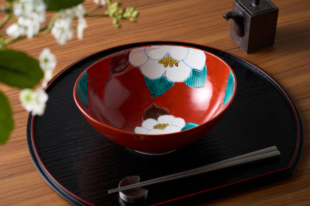 白いごはんや焼き魚、煮物といった日常の献立でも、器を九谷焼に替えるだけで、食卓の印象は大きく変わります。