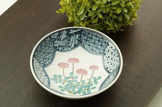 愛らしい色とりどりの草花が描かれた、九谷焼の小鉢です。