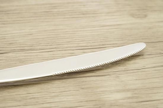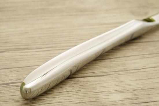 普及タイプの洋食器にかなり利用されている、鋼に13%以上のクロムを添加したステンレスを使用。