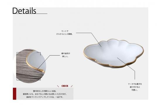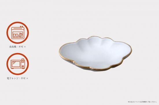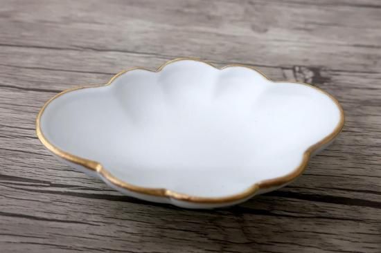 菊の葉の形をした素敵な豆皿はマットな質感と豪華な金の縁取りがとても上品な仕上がりになっています。