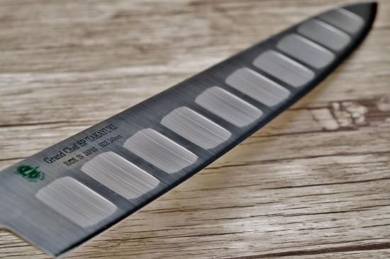 ブレードには、表に「サーモン加工」と呼ばれる窪みがついており、食材に対する切り離れが非常に良く、刃先の鋭い切れ味とともに、一流品ならではの鮮やかな使い心地を生み出しています。