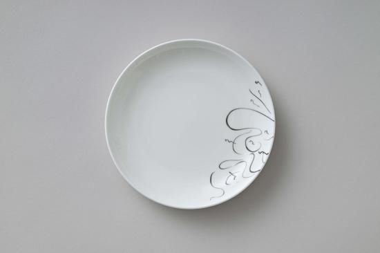 自動筆記を思わせる線や構成が器の上に表現され、料理を引き立てながらも静かな存在感を放ちます。