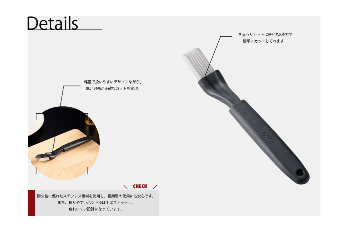 きゅうりカットに便利な8枚刃で簡単にカットしてれます。