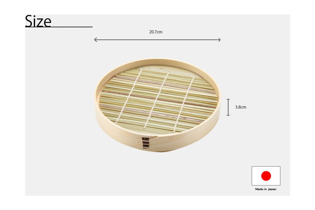 約φ20.7cm×H3.8cm/内寸約φ20cm×H1.4cm ※竹スダレ:約φ19.5cm)