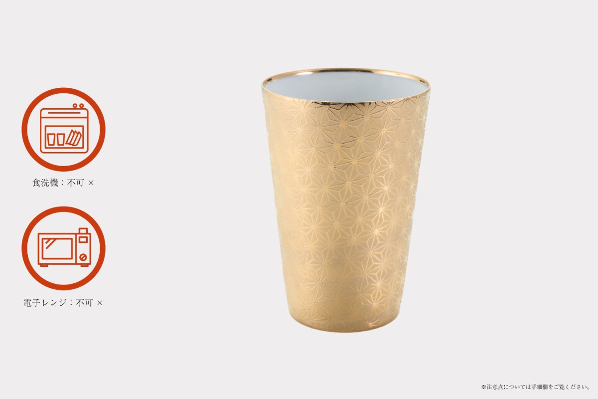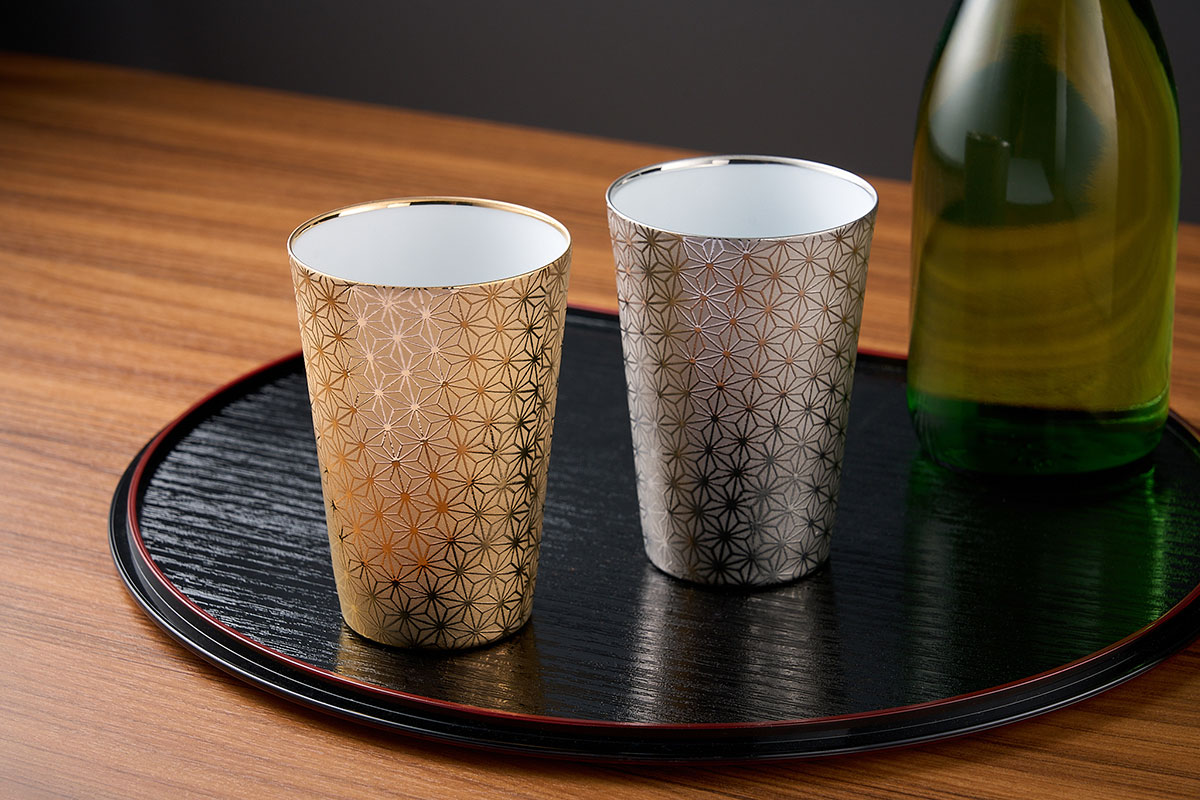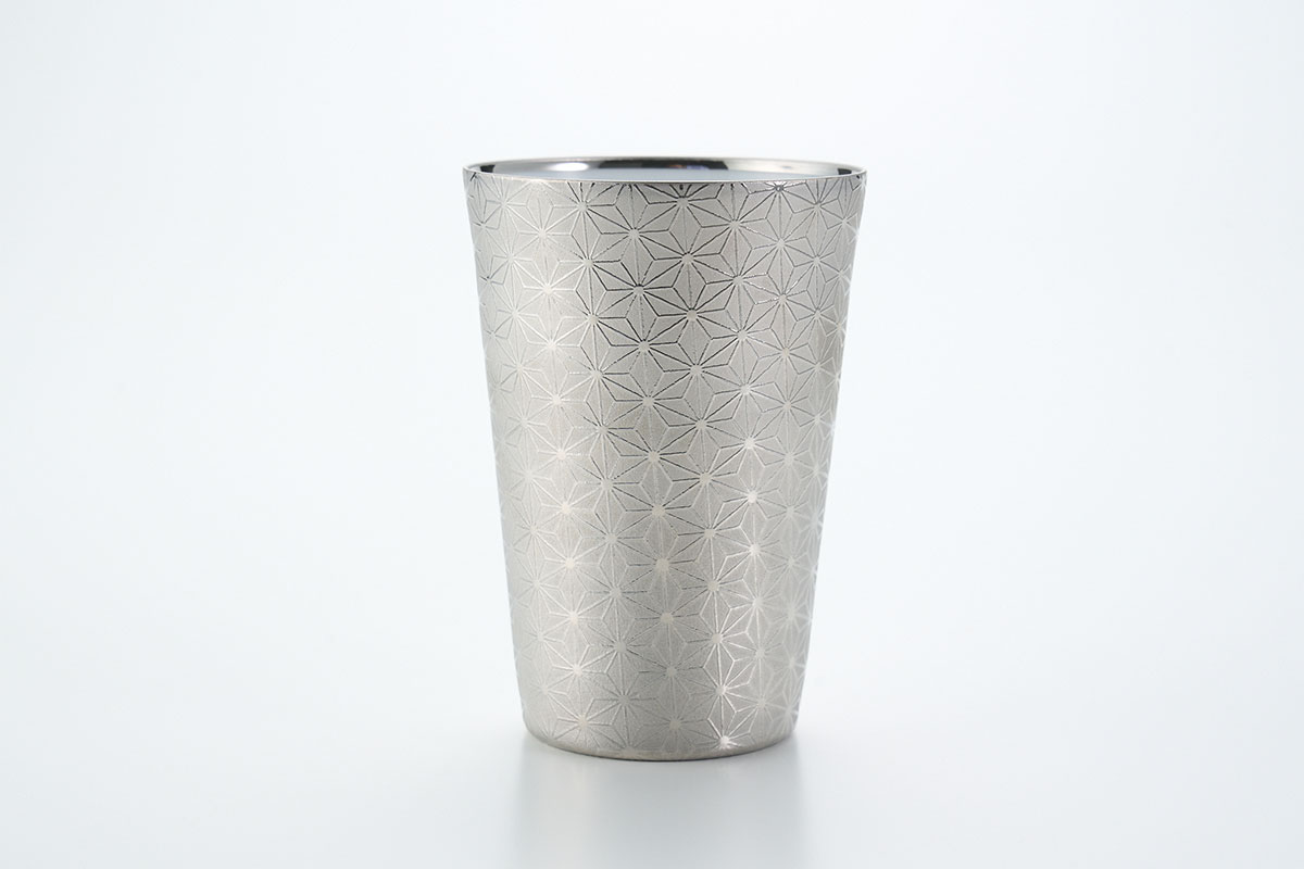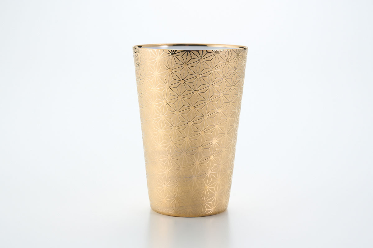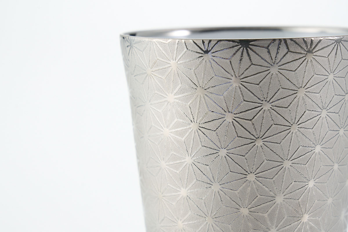 このタンブラーは、伝統的な麻の葉模様をあしらったシンプルでありながら優美なスタイルが特徴です。