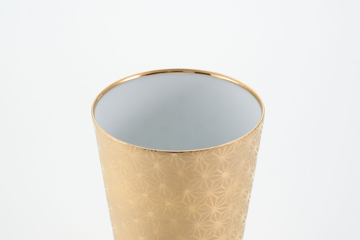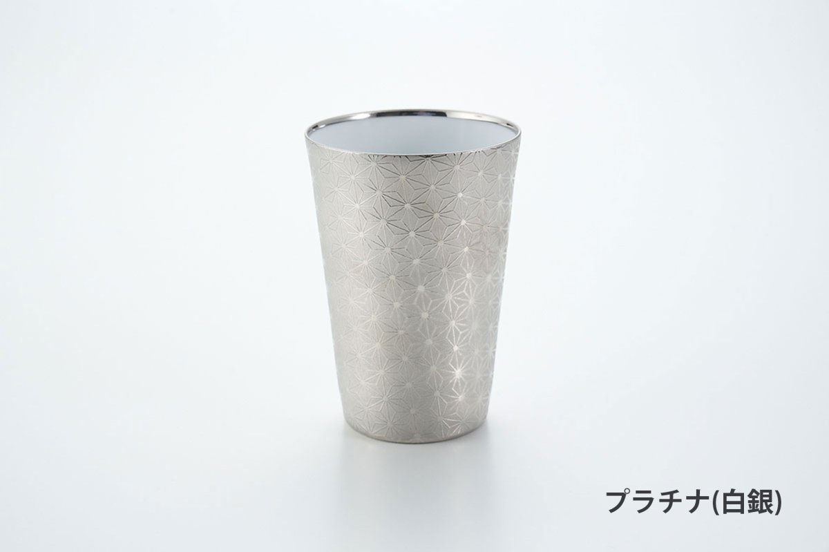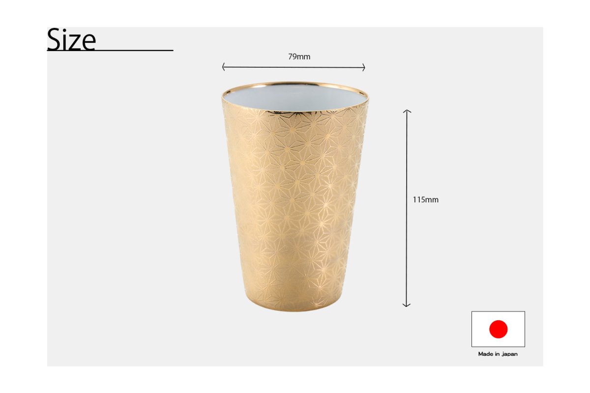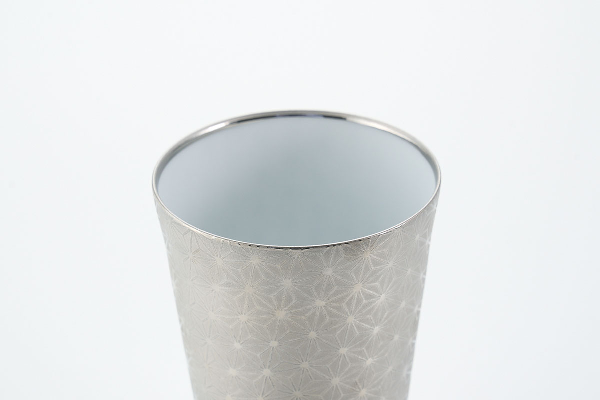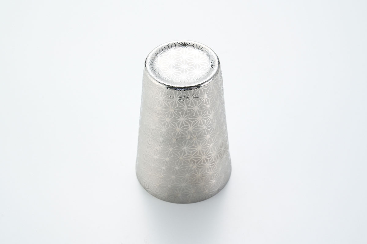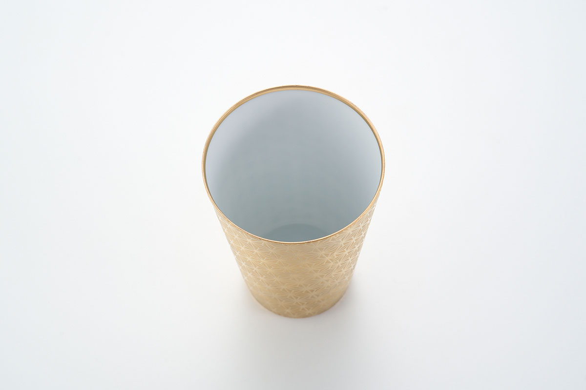 このタンブラーは、伝統的な麻の葉模様をあしらったシンプルでありながら優美なスタイルが特徴です。