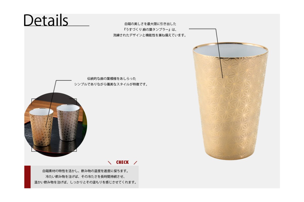 ※こちらの商品は白磁 うすづくり 麻の葉タンブラーのみの販売となります。